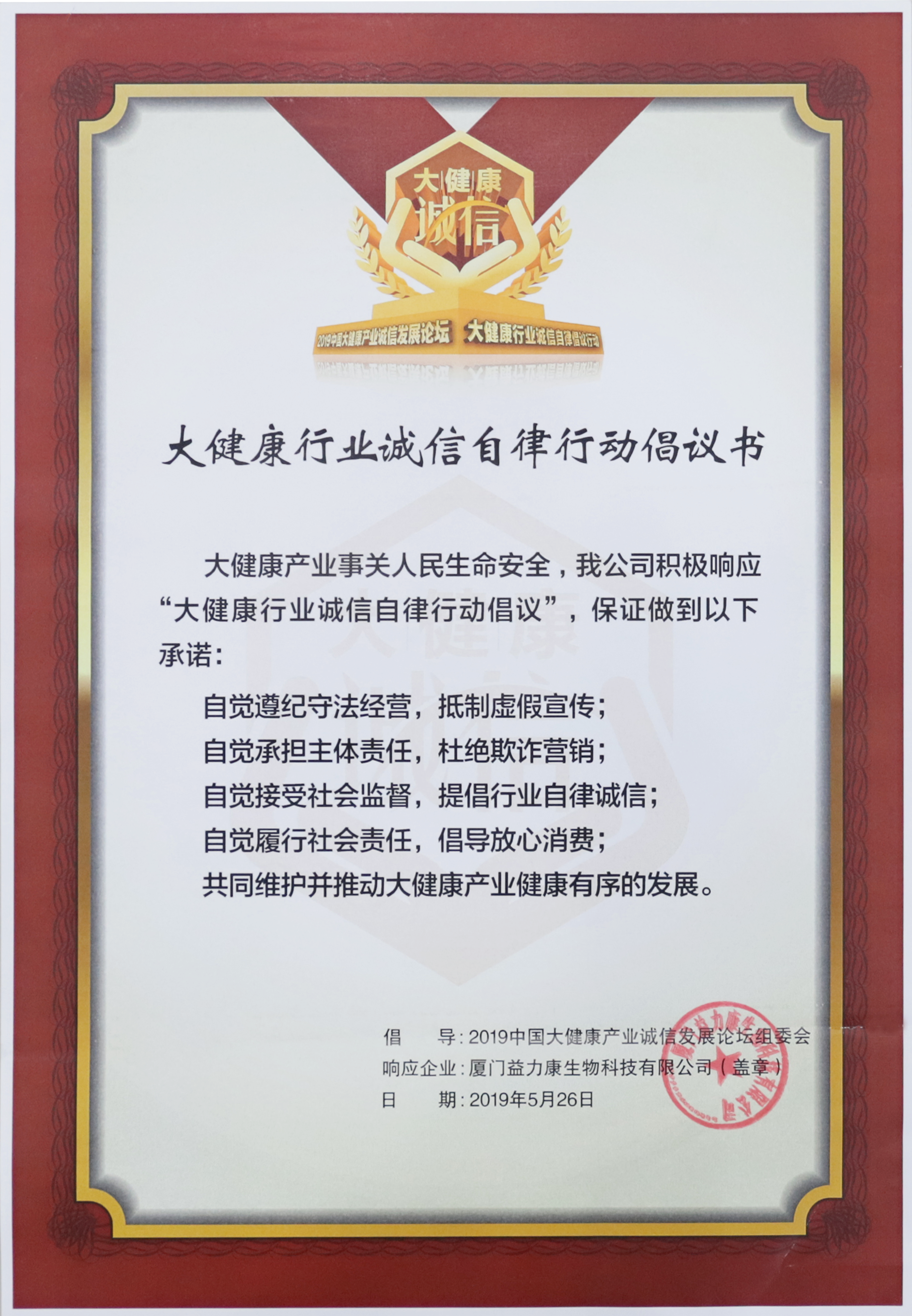 2019年5月26日,由消費日報社主辦,北京國華聯合教育承辦的“2019中國大健康產業誠信發展論壇暨大健康行業誠信自律倡議行動”在北京麗都皇冠假日酒店隆重召開。來自主管部門領導、行業專家及大健康產業相關企業家代表近400人參加了論壇和倡議行動。