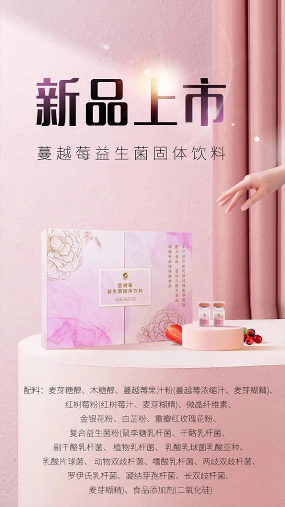 益力康科研人員充分利用蔓越莓豐富的營養(yǎng)成分與養(yǎng)生價值,加入12種優(yōu)質(zhì)益生菌菌種,搭配中藥材:紅樹莓、金銀花、白芷、重瓣紅玫瑰花等等,經(jīng)過反復(fù)調(diào)試研究后,蔓越莓益生菌固體飲料成功上市!